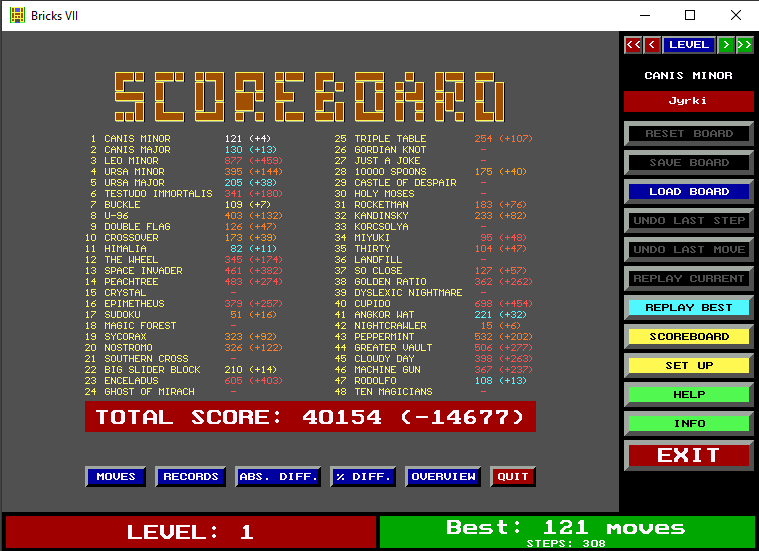 Total improvement: 754 moves in 31 levels